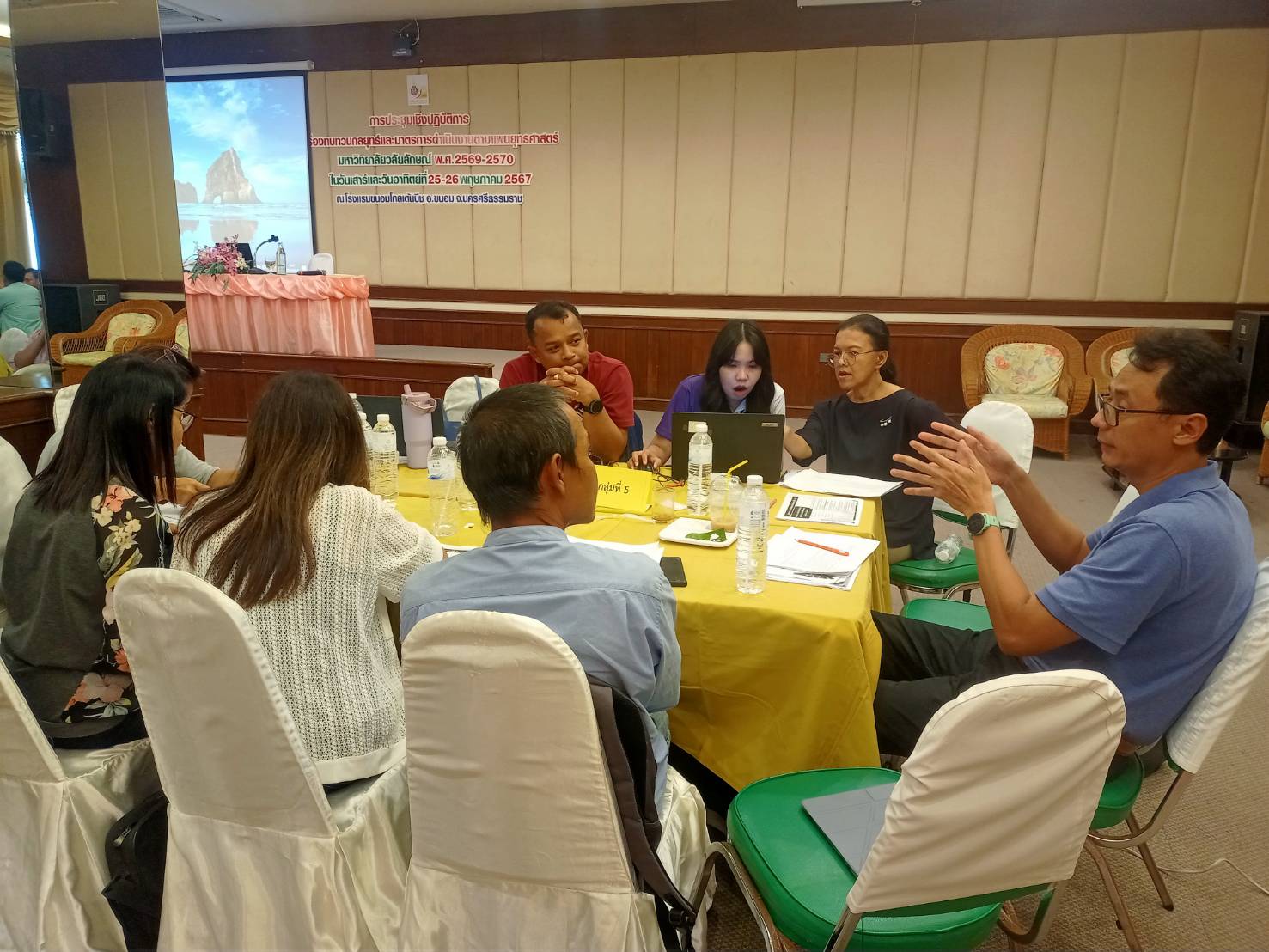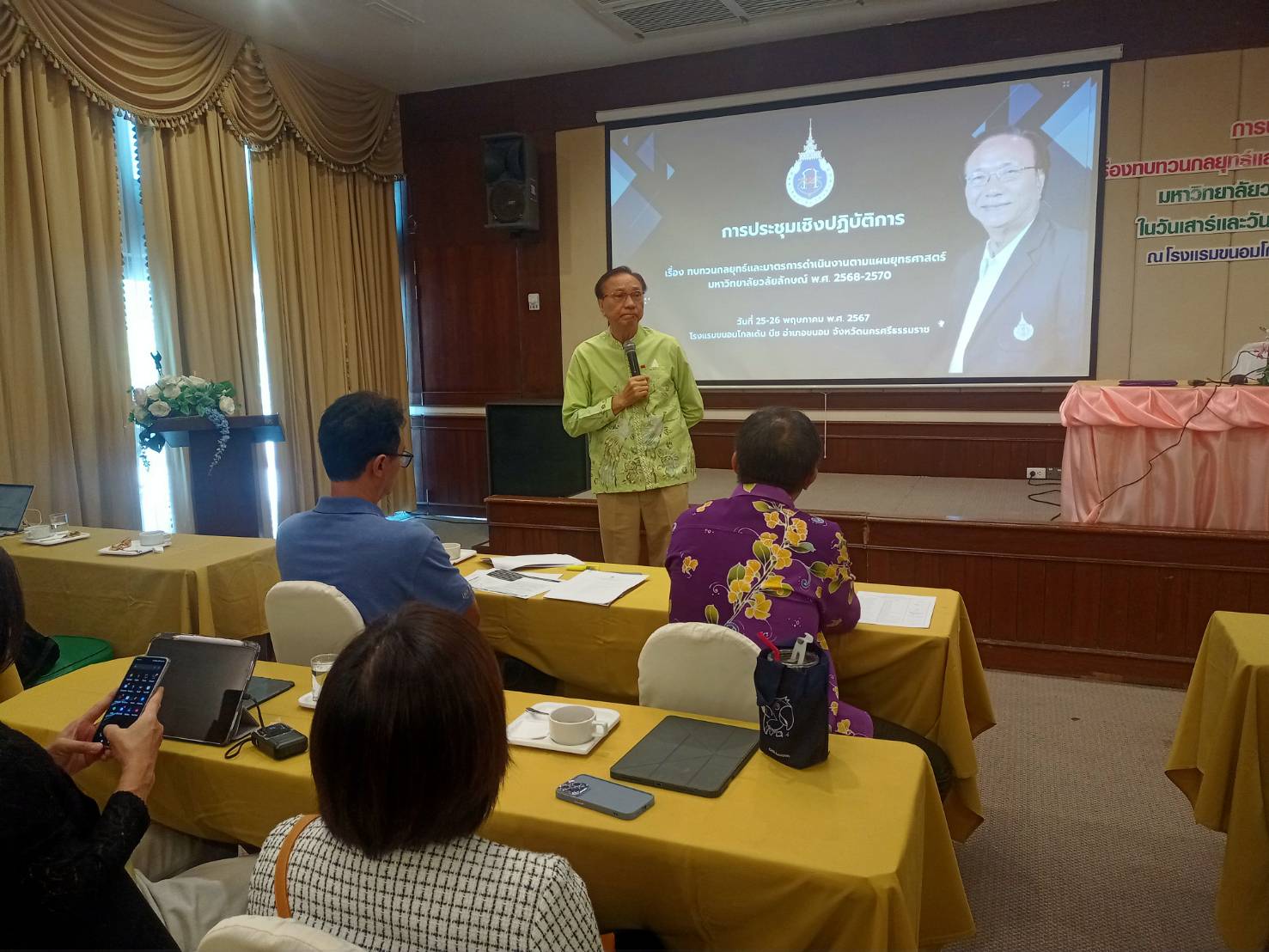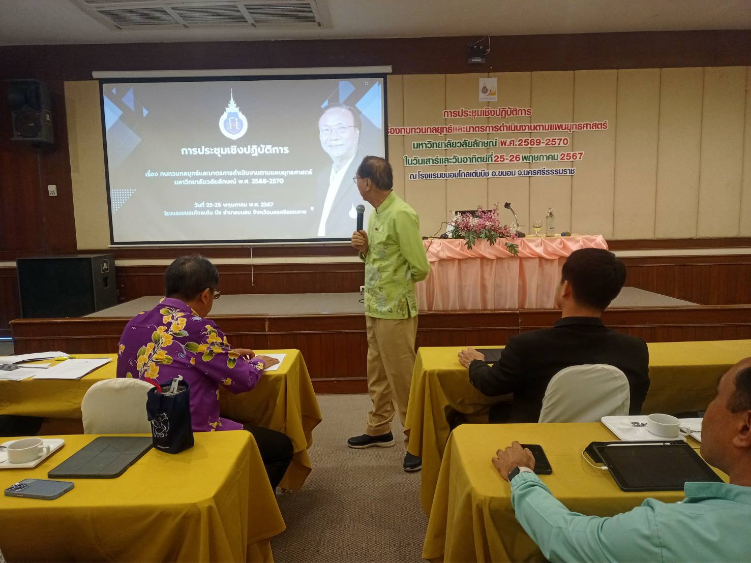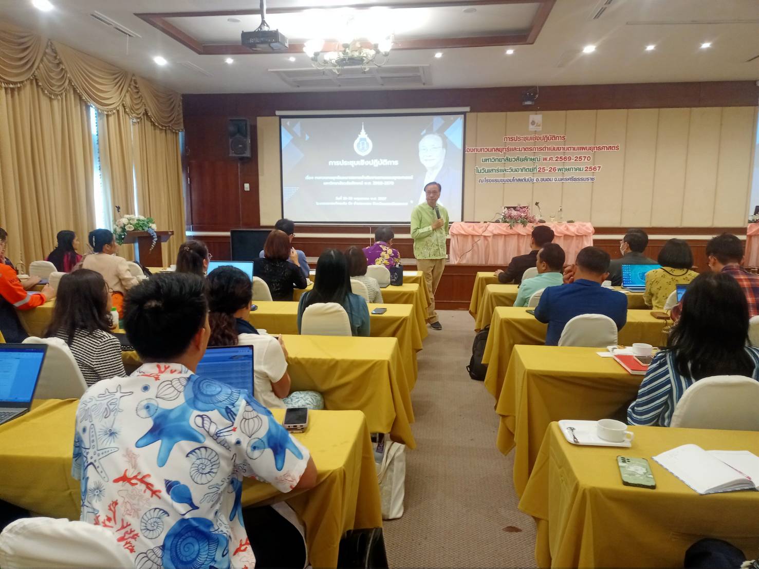 Walailak University, through the Planning and Strategy Division, organized a workshop on “Reviewing Strategies and Operational Measures According to the Strategic Plan 2025-2027” from May 25-26, 2024, at the Khanom Golden Beach Hotel, Khanom District, Nakhon Si Thammarat Province. The purpose of this workshop was to provide a brainstorming platform for senior executives and department heads within the university to review the strategic plan, ensuring it aligns with the current situation and appropriately addresses ongoing changes.