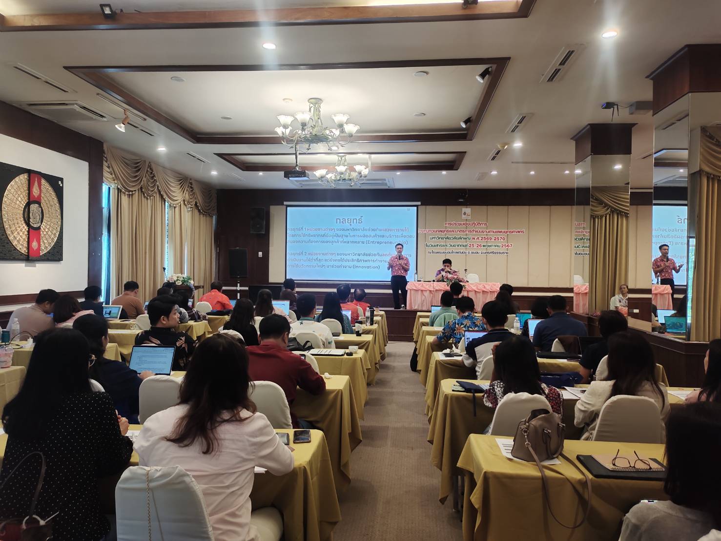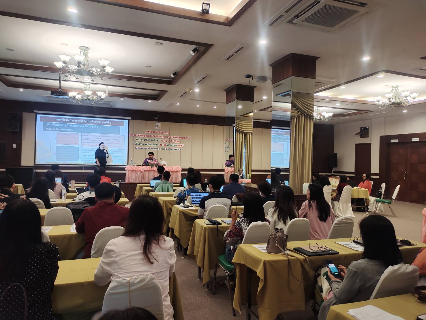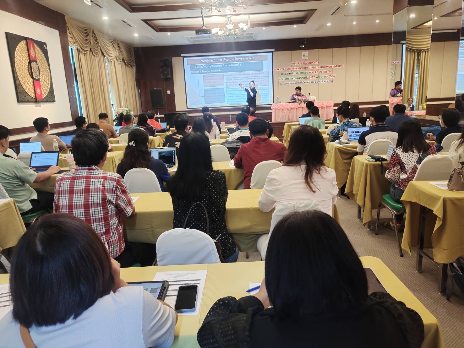 Walailak University, through the Planning and Strategy Division, organized a workshop on “Reviewing Strategies and Operational Measures According to the Strategic Plan 2025-2027” from May 25-26, 2024, at the Khanom Golden Beach Hotel, Khanom District, Nakhon Si Thammarat Province. The purpose of this workshop was to provide a brainstorming platform for senior executives and department heads within the university to review the strategic plan, ensuring it aligns with the current situation and appropriately addresses ongoing changes.