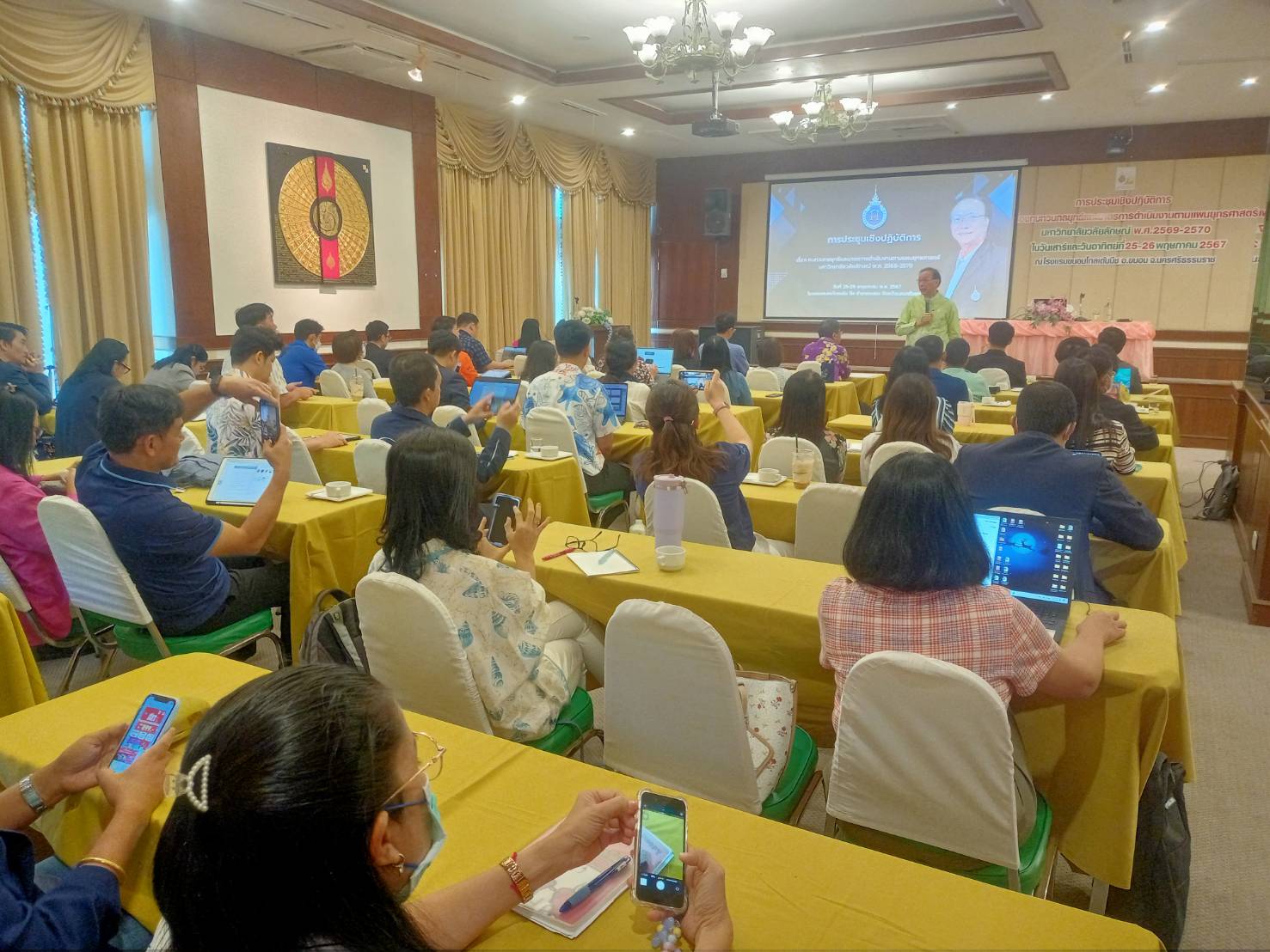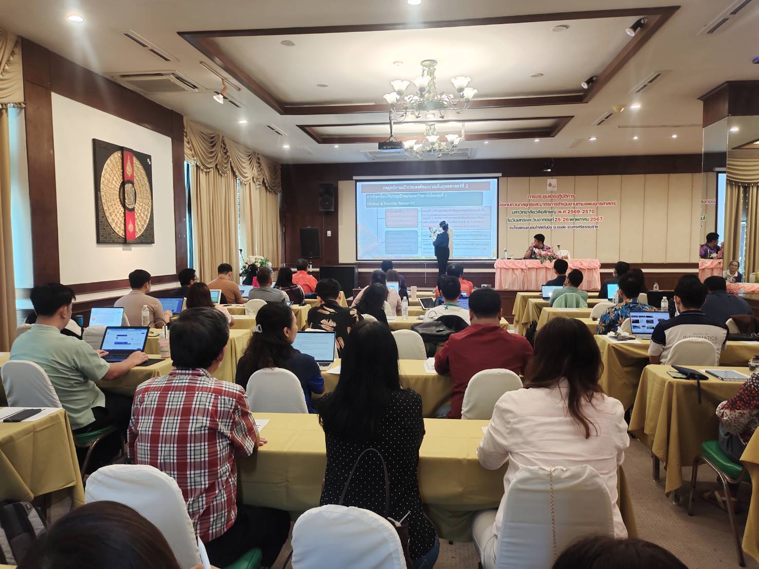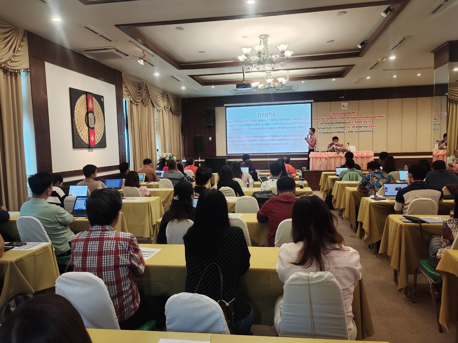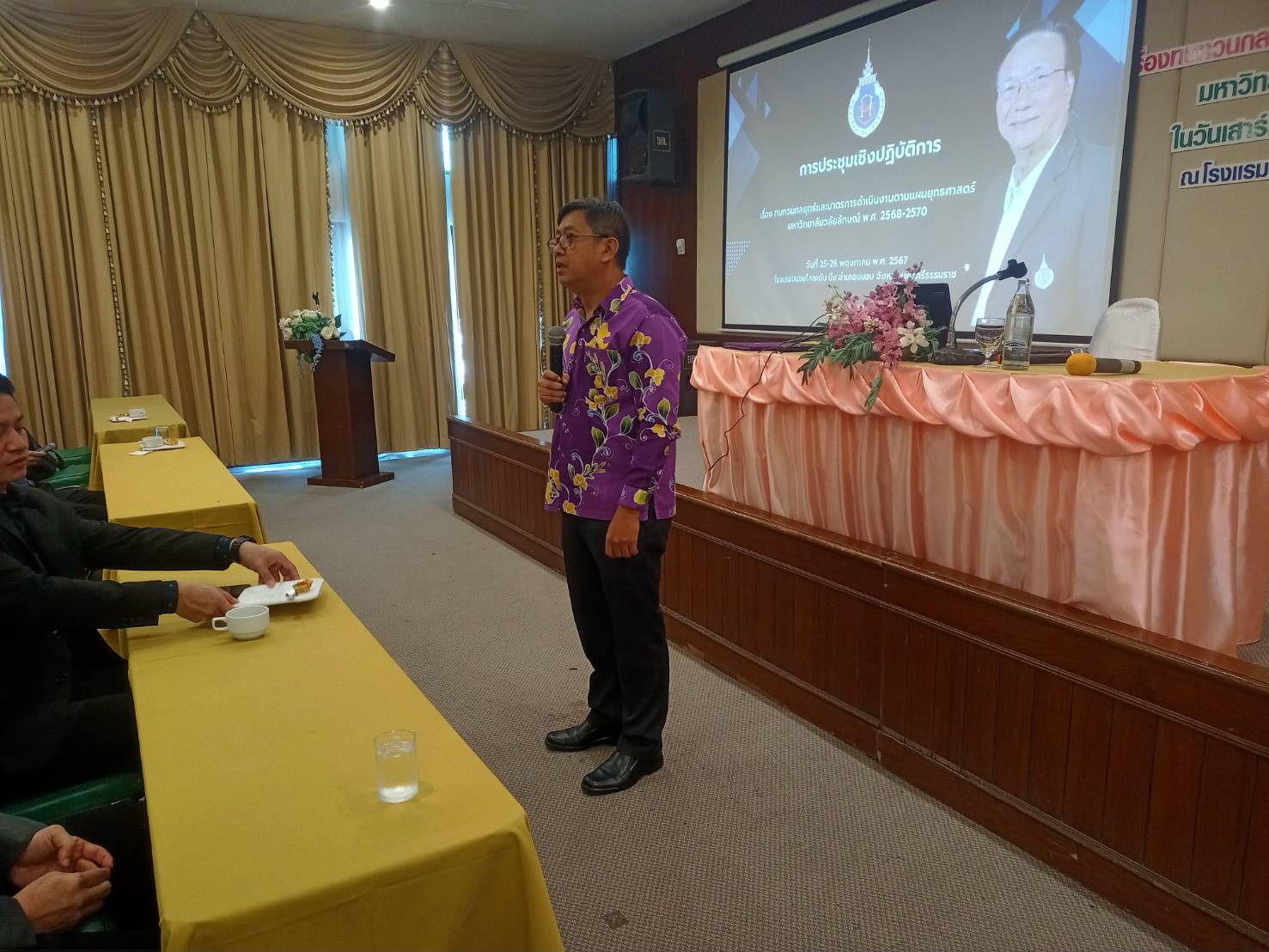 Walailak University, through the Planning and Strategy Division, organized a workshop on “Reviewing Strategies and Operational Measures According to the Strategic Plan 2025-2027” from May 25-26, 2024, at the Khanom Golden Beach Hotel, Khanom District, Nakhon Si Thammarat Province. The purpose of this workshop was to provide a brainstorming platform for senior executives and department heads within the university to review the strategic plan, ensuring it aligns with the current situation and appropriately addresses ongoing changes.
