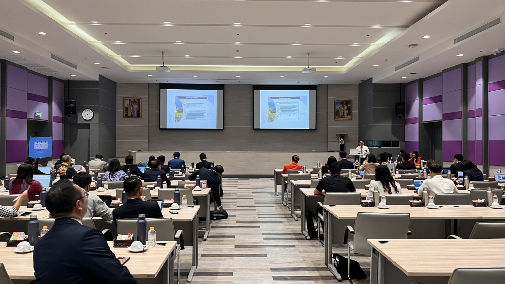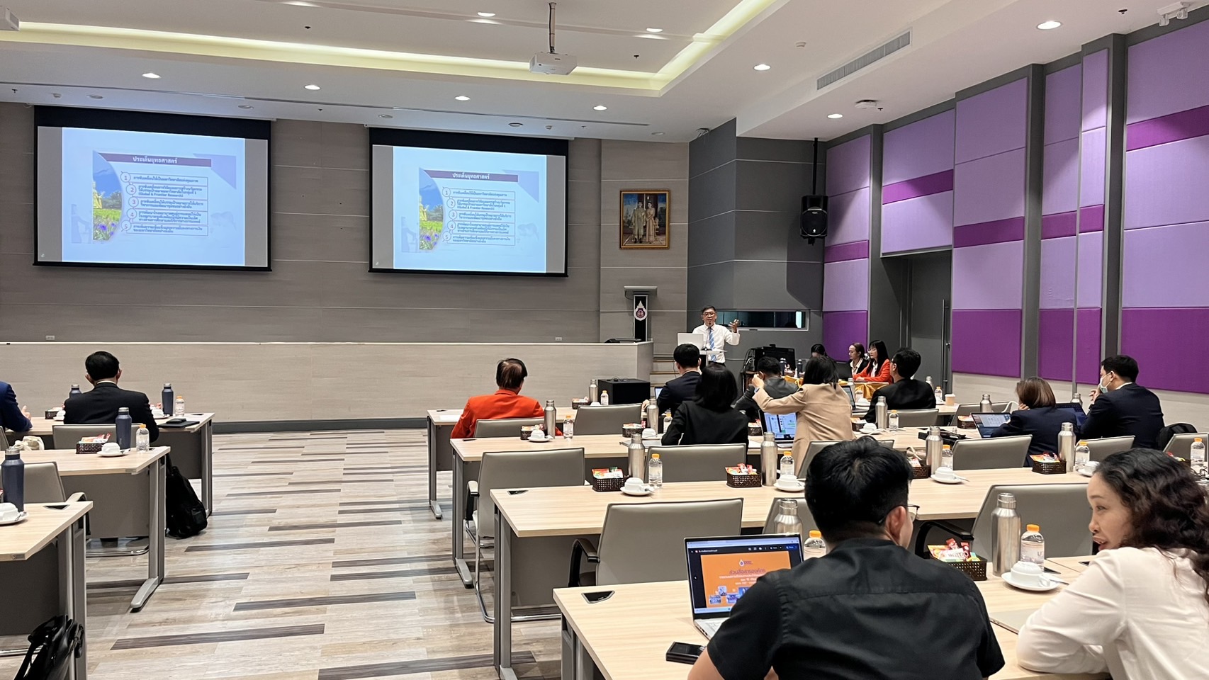 Walailak University’s Planning and Strategy Division organized the second follow-up meeting on the implementation of the fiscal year 2025 operational plan during August 18–19, 2025. The meeting was held at the Phattharadhammaphon Conference Room, 9th Floor, Building D, Walailak University Medical Center Hospital, with approximately 80 participants including executives, heads of departments, and relevant team members.